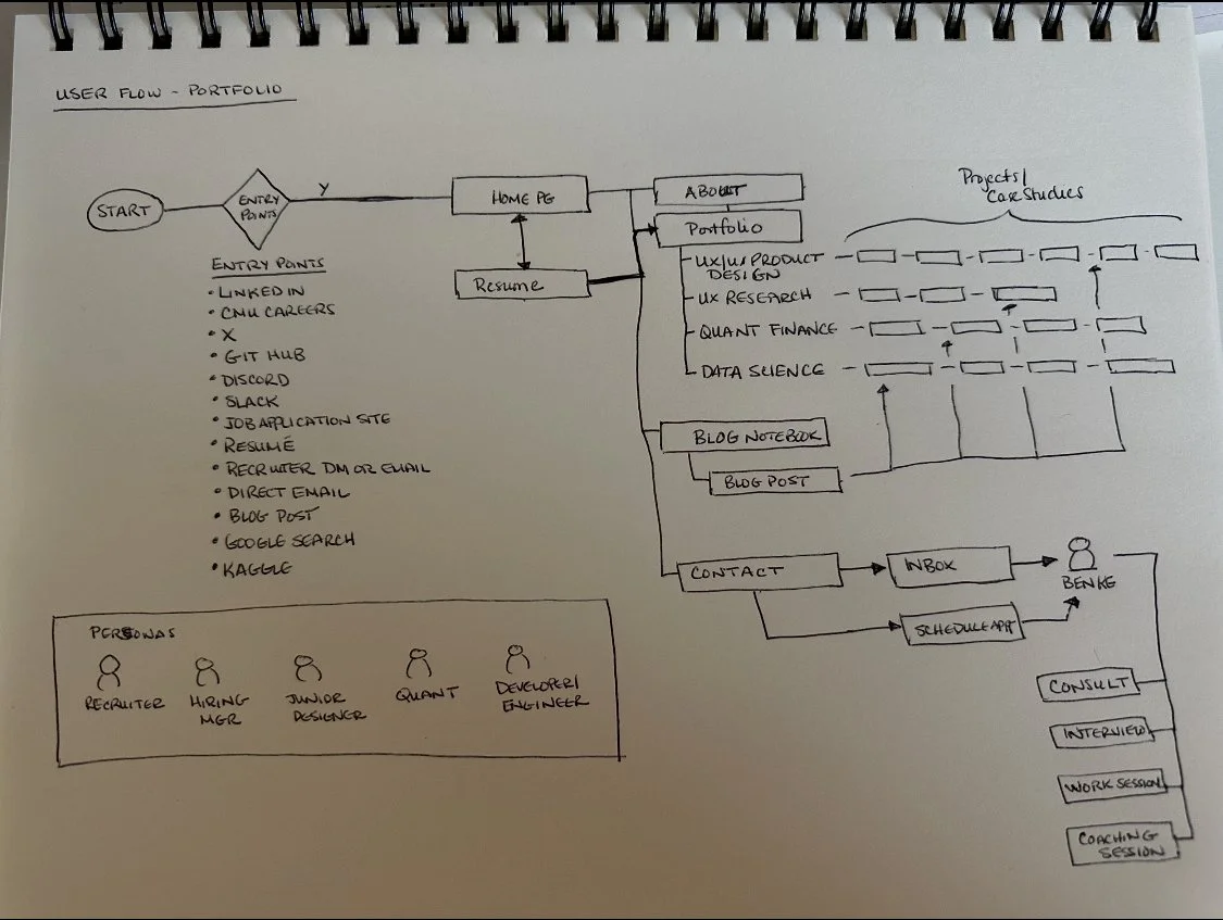 Figure: Brainstorm and rough sketch of portfolio user flow